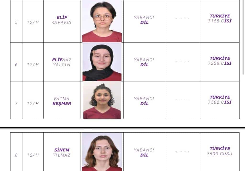 YKS sınavında Türkiye geneli ilk 10.000'E giren öğrencilerimiz